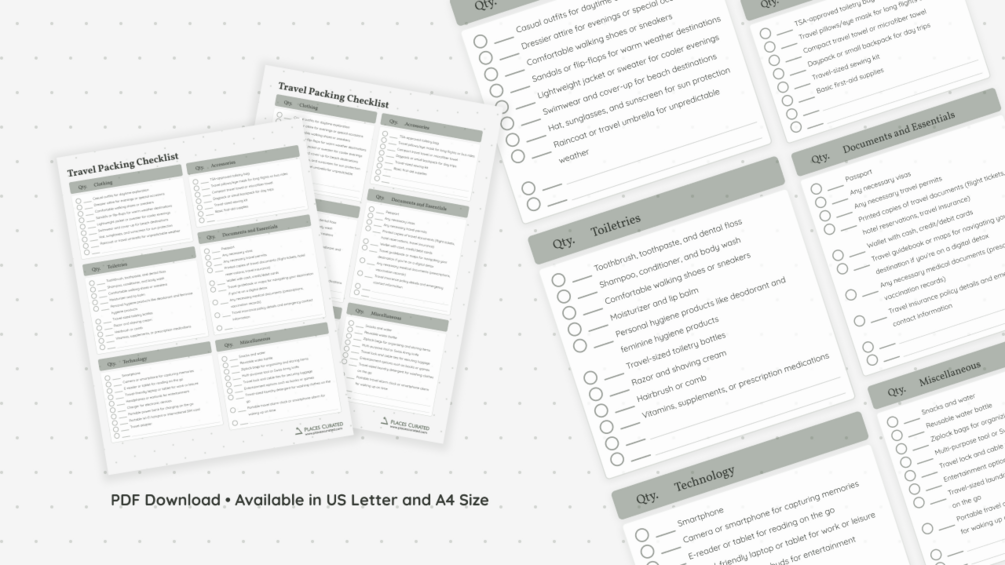 Download this free travel packing checklist today and take the stress out of preparing for your next adventure! Simply print it out and use it to confidently pack everything you need.
